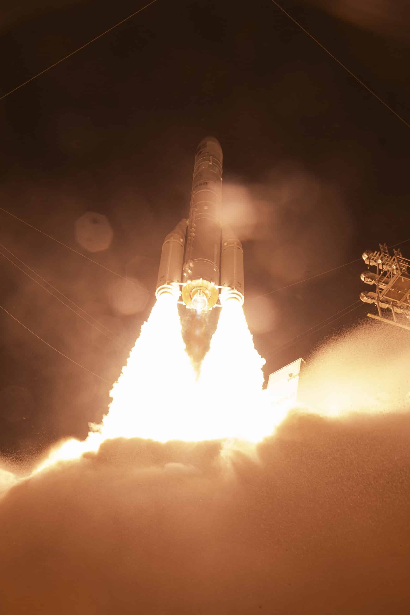 Ariane 6 está diseñado y construido por ArianeGroup. Tiene tres componentes principales, cada uno de los cuales funciona en etapas para escapar de la gravedad de la Tierra y poner los satélites en órbita: dos o cuatro propulsores y un núcleo y una etapa superior. Para este lanzamiento, el cohete estará en su configuración de dos propulsores.